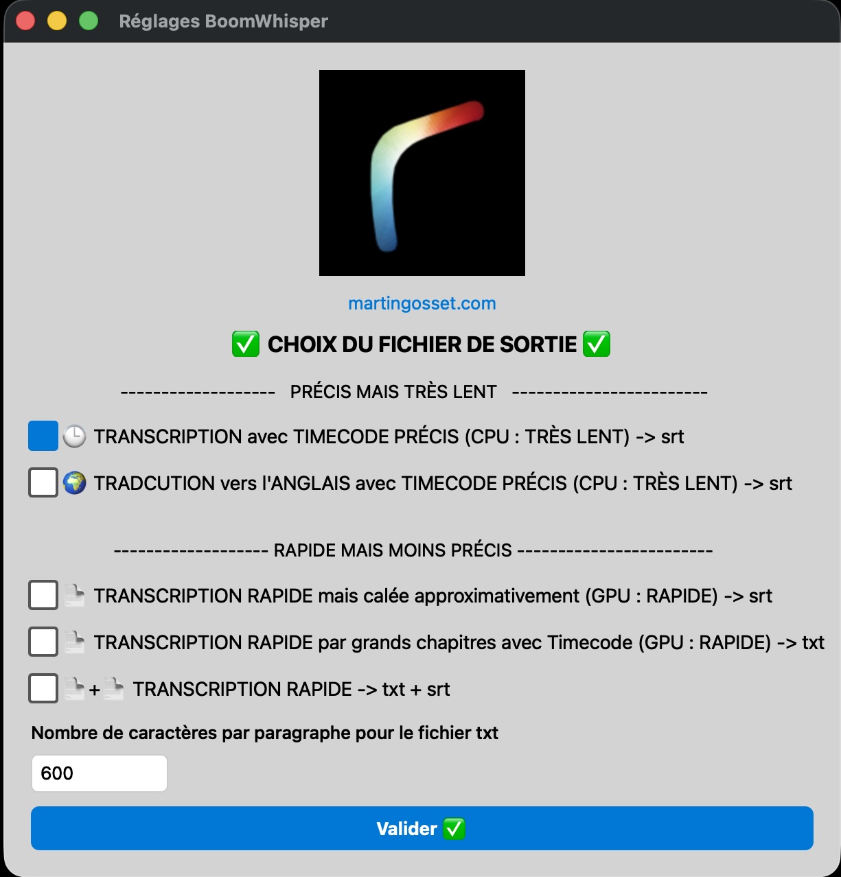 BoomWhisper est un application qui saura TRANSCRIRE ou TRADUIRE vers l’anglais vos fichiers audio ou vidéo. Elle est encore en développement.